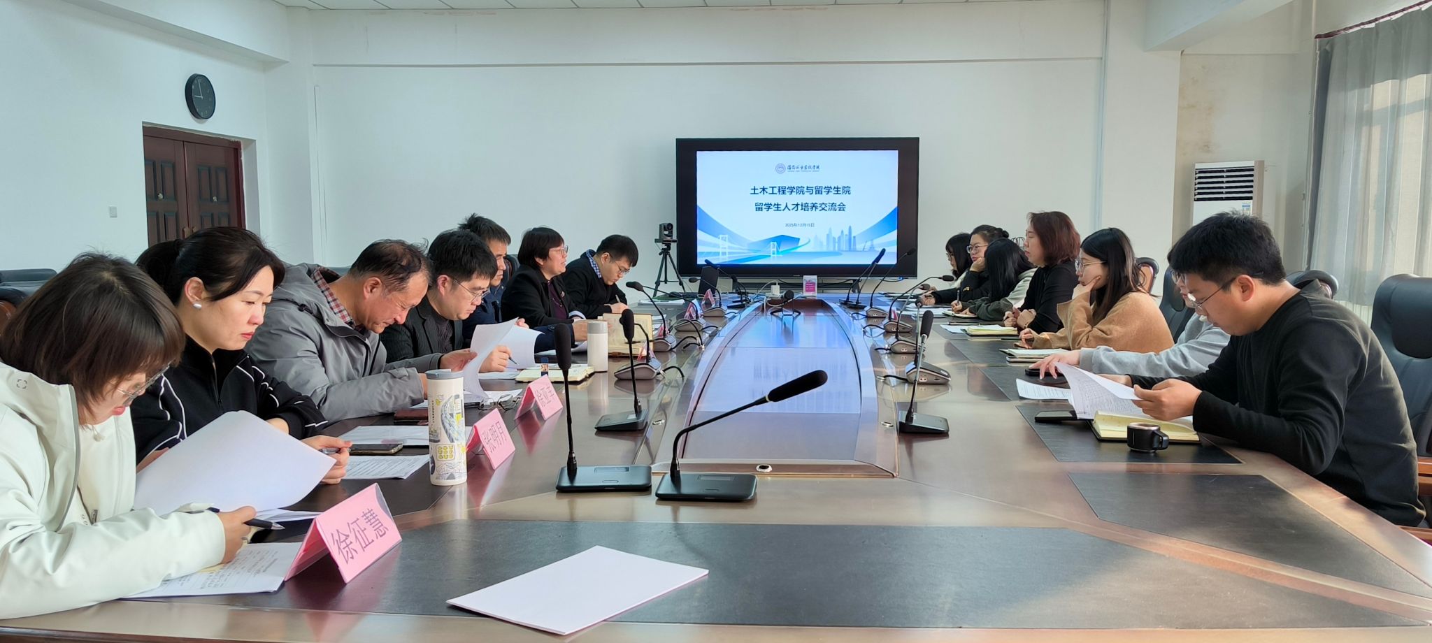 12月15日,土木工程学院与留学生院在留学生院 404 会议室联合召开留学生人才培养交流会。土木工程学院院长赵中华、领导班子其他成员、专业负责人、银龄教授等,留学生院院长邵秀娟、专任教师、辅导员及两学院办公室相关人员参会,旨在扎实推进留学生土木工程专业人才培养工作,提高教学质量与育人成效。