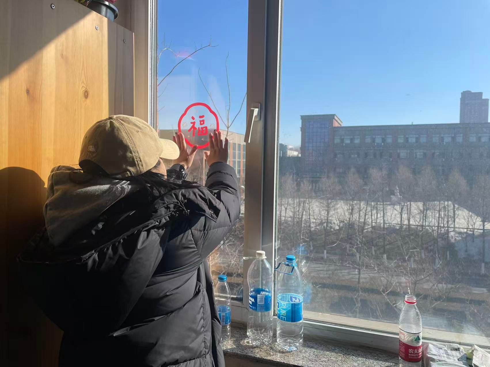 走访教师们为每一位留校留学生赠送了精心准备的新春福字和新年礼物。福字笔墨饱满、寓意吉祥,是新春最具代表性的符号,承载着学校对学子们平安喜乐、学业有成、万事顺遂的美好祝愿。教师们将新年礼物送到同学们手中,帮助学生贴福字,与大家亲切合影留念。留学生们脸上洋溢着幸福的笑容,一位来自孟加拉的学生霍萨说道:“感谢学校和老师的关爱,这个福字让我感受到浓浓的中国年味!”
