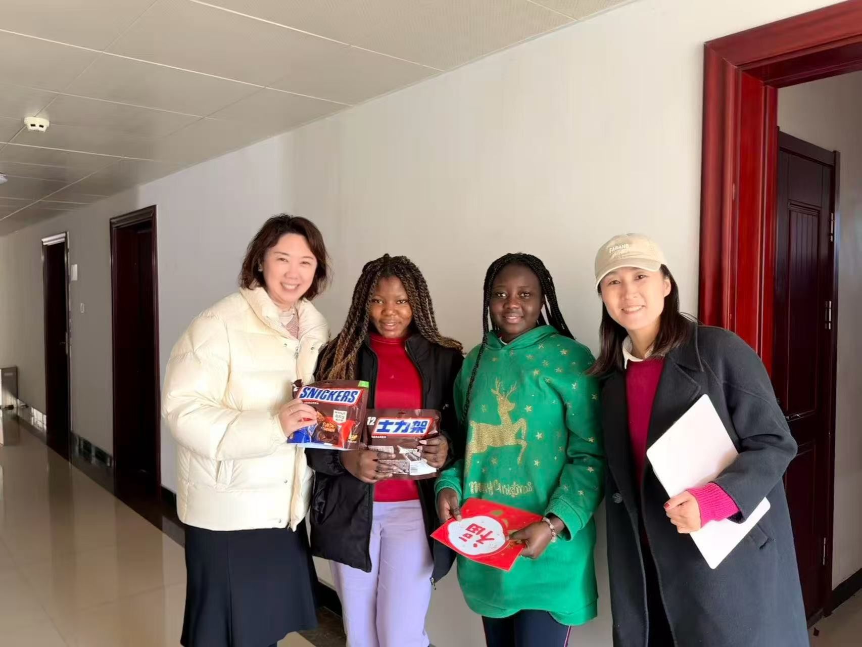 As the old year gives way to the new, a new chapter unfolds. To help international students staying on campus experience the rich atmosphere of traditional Chinese festivals and the warm care of the university. At 9:00 a.m. on February 16, Ms Shao Xiujuan, Dean of the International Students Institute, led teachers Li Yunjie and Yu Miao to the International students dormitories. They cordially visited and extended greetings to 140 International students spending their winter vacation on campus, offering New Year blessings and warm care to those far away from home.